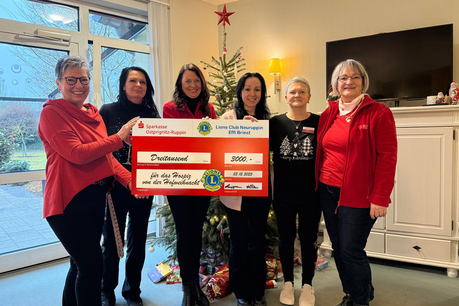 Der Erlös der Veranstaltung war für das Hospiz Haus Wegwarte in Neuruppin bestimmt, eine Einrichtung, die seit vielen Jahren eine unverzichtbare und außergewöhnlich vielseitige Arbeit in unserer Region leistet. Heute durften Vertreterinnen des Lions Club Effi-Briest mit großer Freude die Spendensumme in Höhe von 3.000 Euro überreichen.