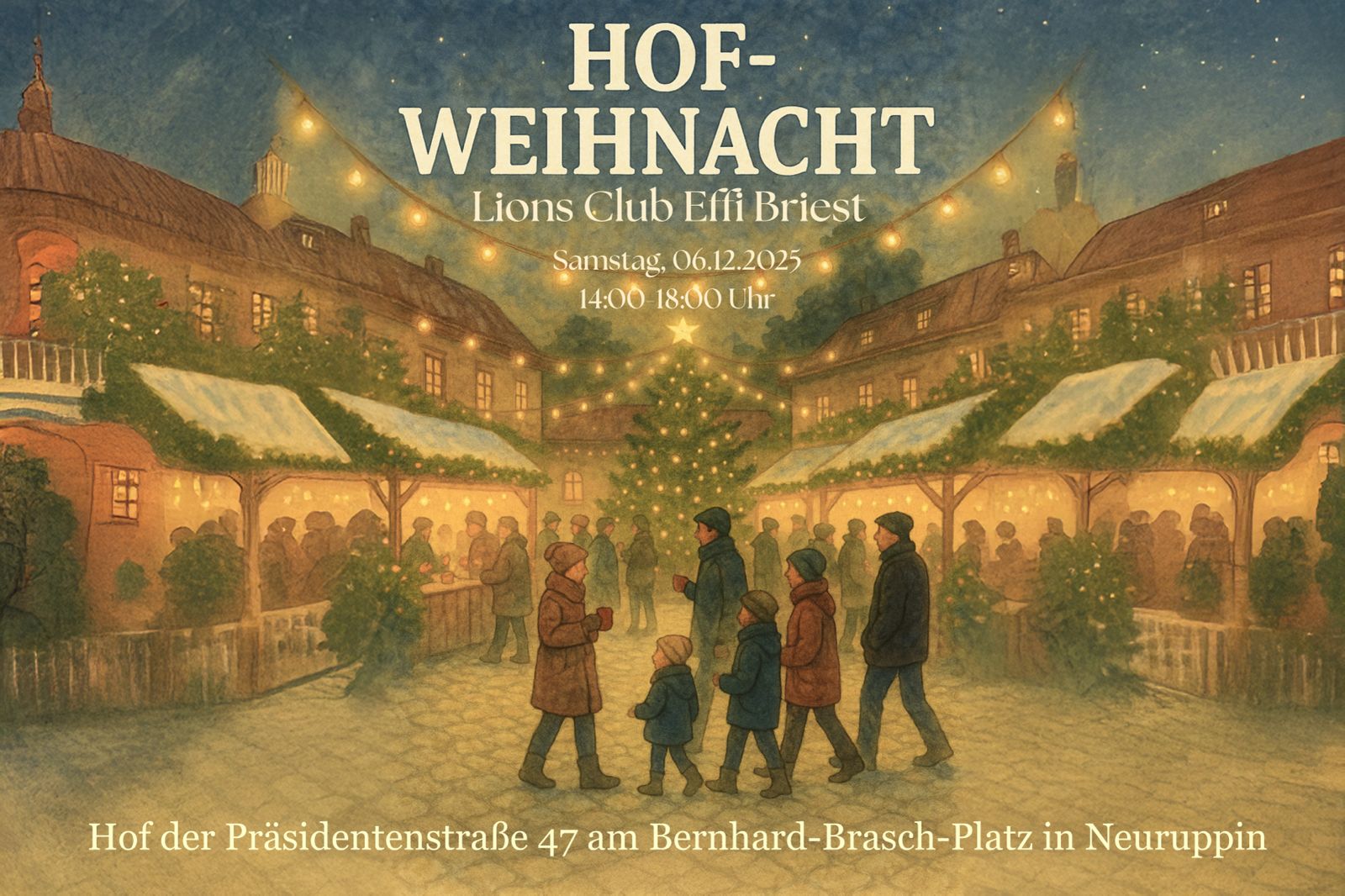 Am 06.12.2025 laden wir herzlich zur ersten Hofweihnacht des Lions Clubs Neuruppin – Effi  Briest im Hof Präsidentenstraße 47 im Herzen von Neuruppin ein.